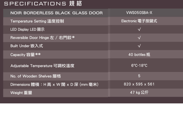 - 單一溫度紅酒櫃 40瓶 香港行貨